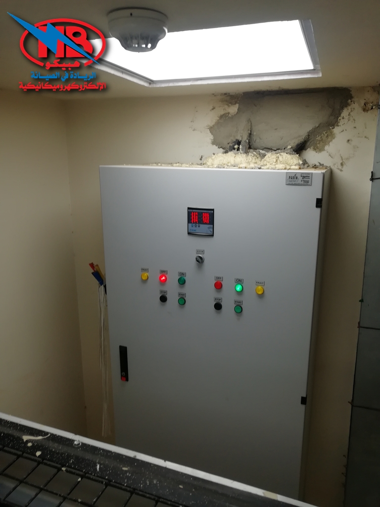 - ATS panel with two lines is designed and installed, as the two main sources of feeding work as entrances to the panel through two separate cables, while the main cable feeding the main panel of the establishment comes out of the panel.